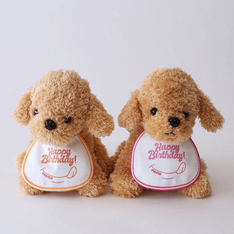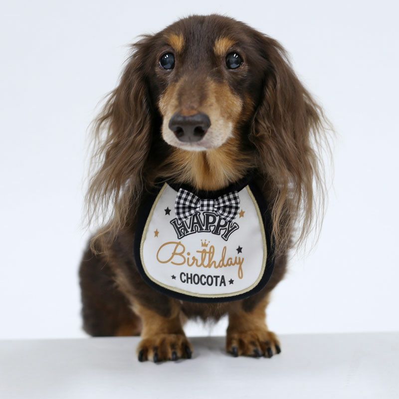 とっても可愛い犬用ビブ(スタイ・よだれかけ)です。全て名入れカスタマイズ対応、ご注文をいただいてから1点づつお作りいたします。お誕生日のギフトや、プレゼントにもぴったり。無料でギフトラッピング対応いたします。またSNS投稿や、年賀状にもおすすめです!