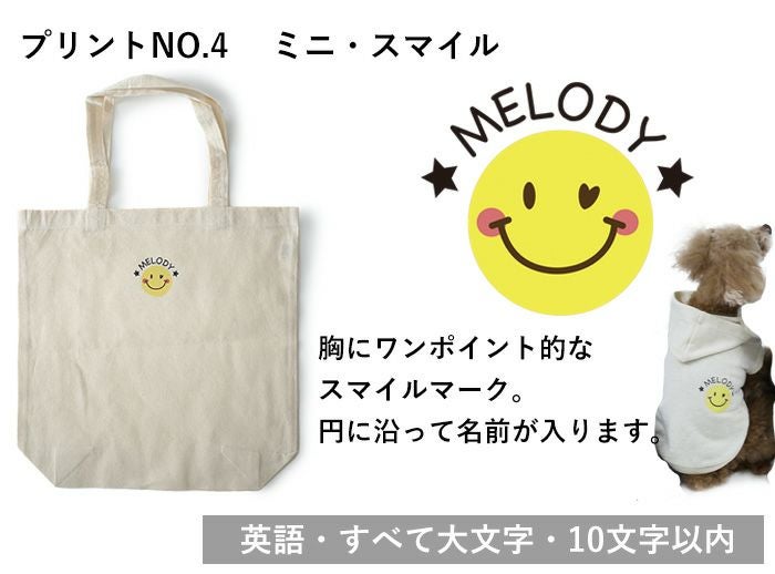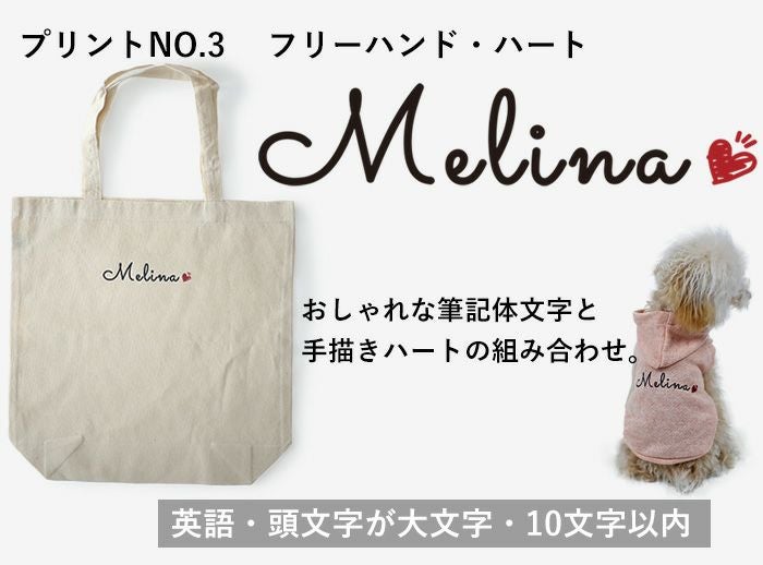愛犬の名前を入れたバッグが作れます。プレンゼントにもおすすめです。