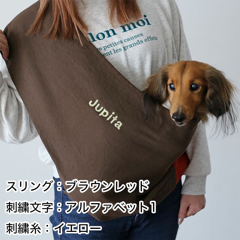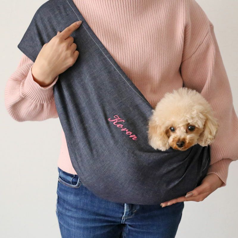 ドッグスリングにうちの子だけの刺繍とプリントが出来ます。