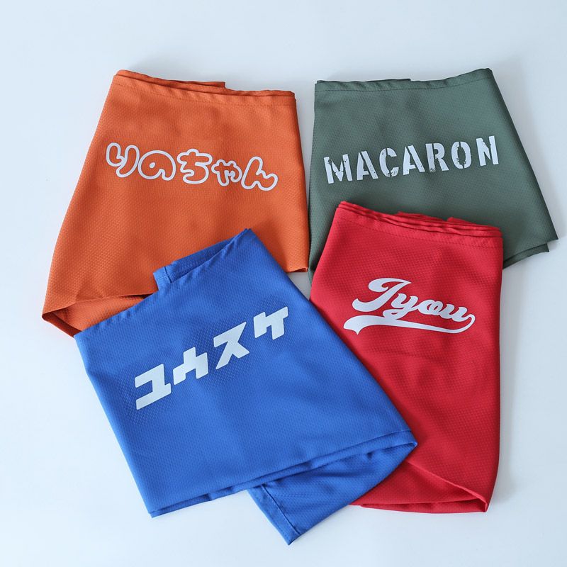 7色の糸と4つのフォントから名入れや好きな言葉を刺繍できます。クールMAXコンパクトスリング専用プリント