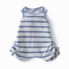 1.2㎏のチワワ、xsサイズ。 思った以上に着せたら可愛かったです。 生地は柔らかくて着心地は良さそうです。 うちの子は体が小さく足も細いし長くもないので、ロンパースやパンツはちょっとはしゃいだりゴロゴロするとすぐに足が抜けてしまいます。でもこのロンパースは裾に軽くゴムが入っているのでほとんど足が抜けることがないのですごく良かったです。このデザインでまた違う生地が出たら欲しいです。