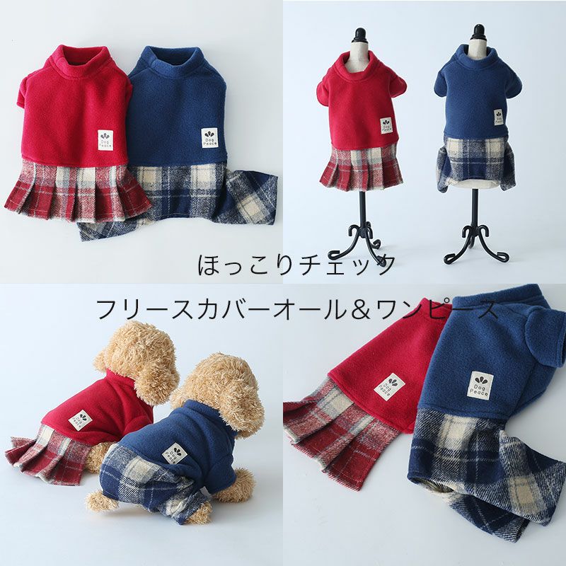 ほっこりチェック・フリースカバーオール&ワンピース | 犬服通販ドッグピース