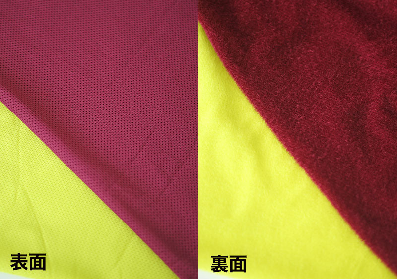 裏面は起毛で表地は通気性のよいポリエステル素材。