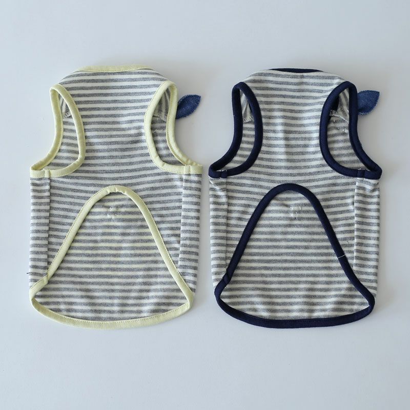 伸びのよいコットンベースのニット地だから、動きやすさも◎。 細ピッチのグレー×オフボーダーは、どんな毛色にも似合う万能カラー。