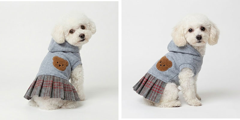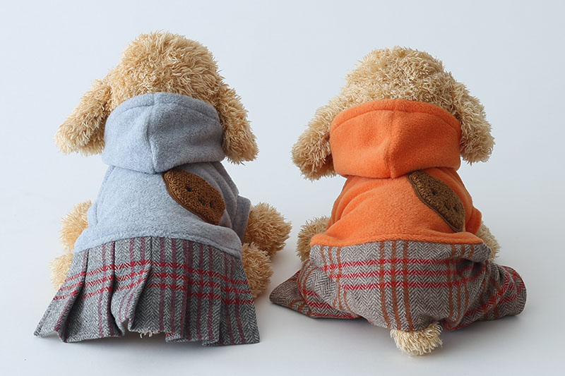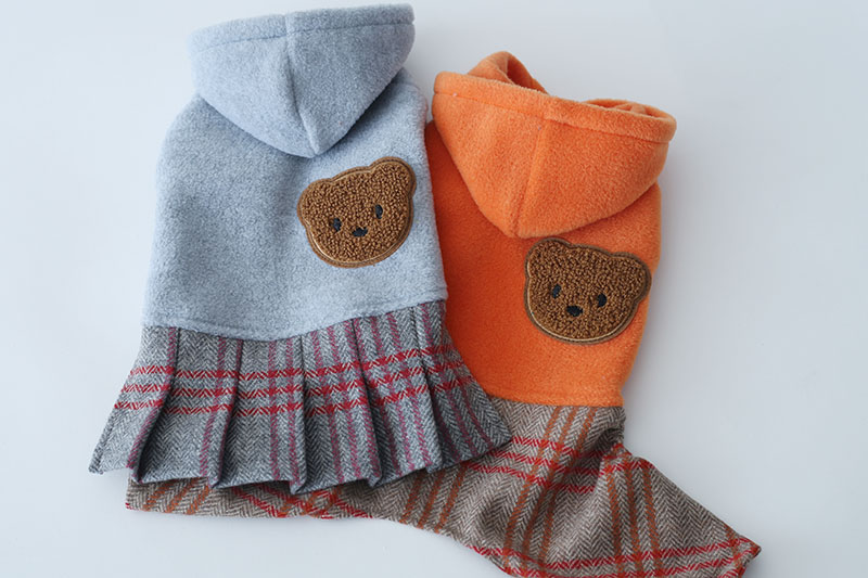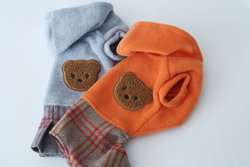 くまアップリケ・カシミアチェック・フリースワンピース&カバーオール | 犬服通販ドッグピース