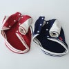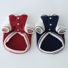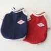 赤とネイビーのすっきりした配色に、生成りの袖がやわらかな印象をプラス。 カジュアルだけど主張しすぎず、普段のお散歩にも取り入れやすいデザインです。