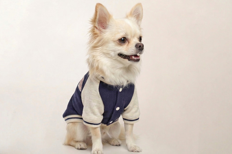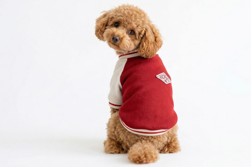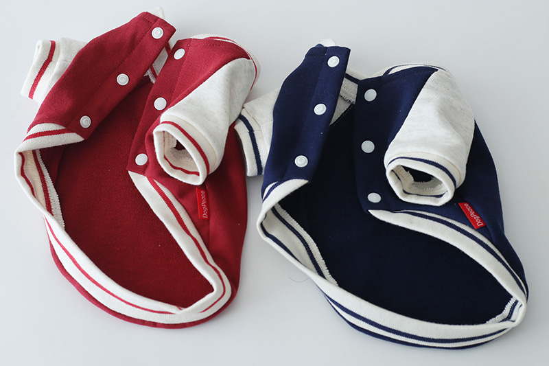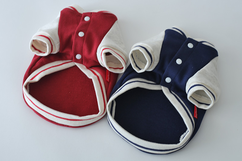 愛犬の毎日に「ちょっと特別」をプラスする、ニットジャージ素材で仕立てた、やわらかく着心地のいいスタジャン風ウェアシリーズ。