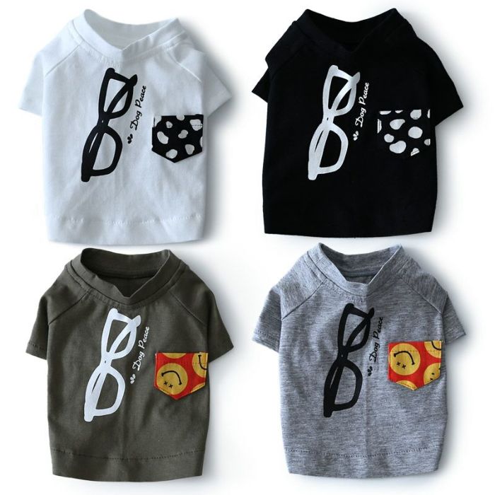 めがねプリントポケット付きラグランTシャツ | 犬服通販ドッグピース