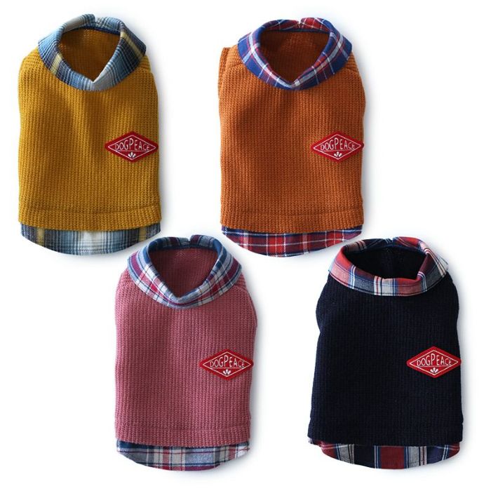 畦編みレイヤードチェックシャツ | 犬服通販ドッグピース