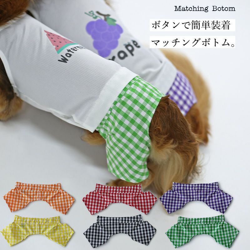 ドッグピース・マッチングスタイルシリーズは、トップについているボタンを、パンツやスカートのボタンホールに通すだけ。ワンピース・カバーオール感覚で全身コーデが楽しめます。