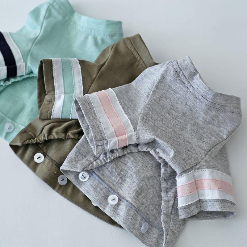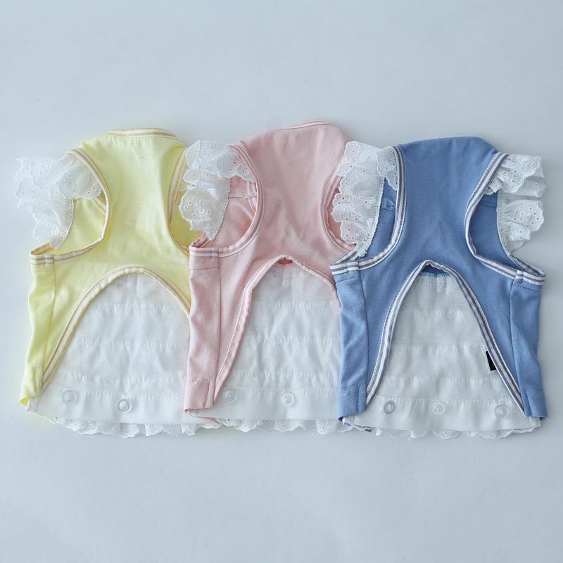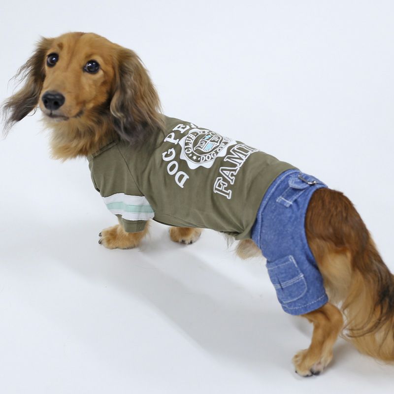 ドッグピース・マッチングスタイルシリーズは、トップについているボタンを、パンツやスカートのボタンホールに通すだけ。ワンピース・カバーオール感覚で全身コーデが楽しめます。