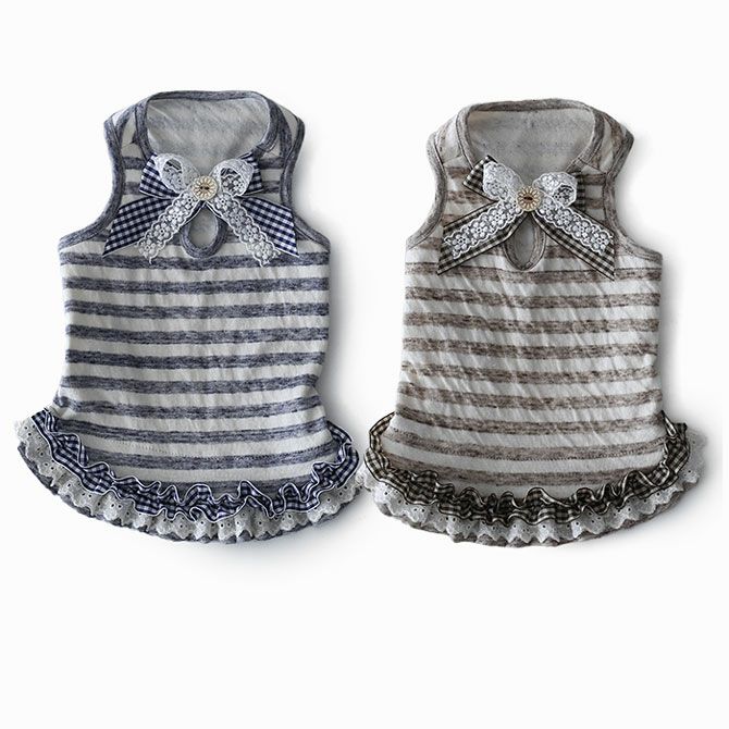 ダブルガーゼボーダー・レースリボンチュニック【マッチングスタイル対応】 | 犬服通販ドッグピース