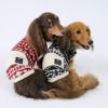 フードつきのパーカーが苦手なワンちゃんにもおすすの、ジャガードの織りのらくちんニットベスト。落ち着いたカラーのトライバル模様で、秋から冬まで長いスパンで着てもらえるお気に入りの一枚になるでしょう。背中の大きなカンガルーポケットがキュートポイント!