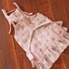 肩ひもとタイプのキャミソールと三段のフリルを組み合わせた女の子用チュニック。 シンプルな形ですが、そこはママの腕の見せ所♪レースと組み合わせたり、アレンジを楽しんでください。 素材に可愛い生地を見つけたら、ぜひトライしてみたいお洋服です。