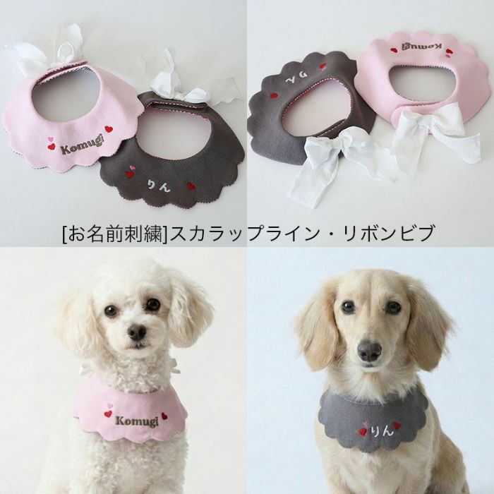 [お名前刺繍]スカラップライン・リボンビブ | 犬服通販ドッグピース