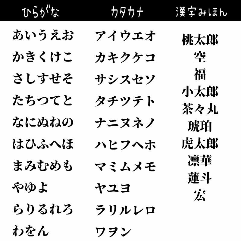 体重の軽い順に並んでいますのでサイズ選びの参考にしてください