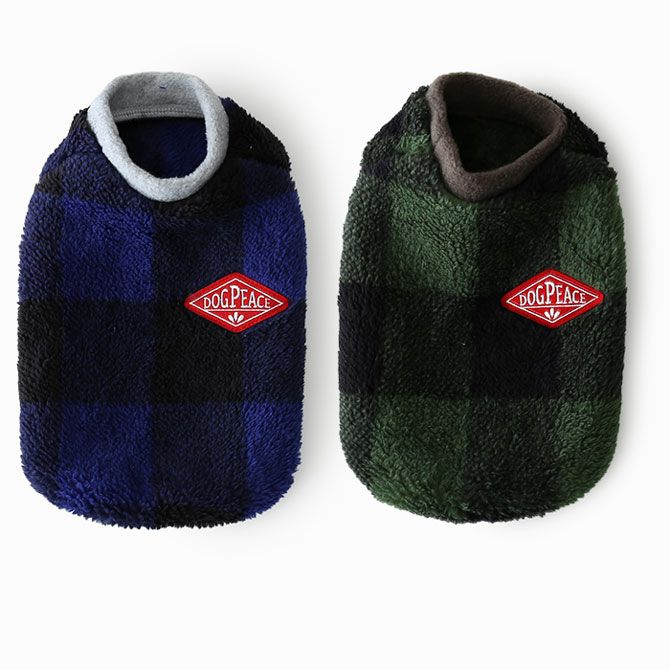 ふわふわボアチェックフリースベスト | 犬服通販ドッグピース