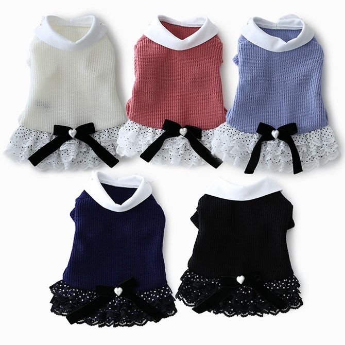シフォンフリル畦編みニットワンピース | 犬服通販ドッグピース