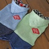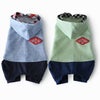 春らしいさわやかカラーのパーカーに本格的なデニムパンツ。1着だけで、きちんと感が楽しめるカバーオールです。シンプルなデザインですが、フードの裏のチェック模様、肩のひし形刺繍ロゴがとても品があって、お出かけ映えすること間違いなし。おしゃれわんちゃんにマストの1着です。