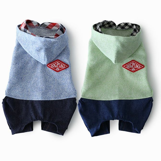 パステルニット&デニムパーカーカバーオール | 犬服通販ドッグピース