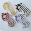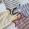リネンが入ったコットンボーダーでつくったナチュラルテイストなロンパースです。さらりとした風合いのボーダー生地がとってもやさしい印象を与えてくれます。毎日着るウェアにちょうどいいシンプル具合がうけています。