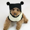 犬モデルが着用しているものは旧デザインとなり、フードの端の部分が梵天になっており、とんがりしっぽが付いていません。実際の商品は↑の商品写真のものとなります。