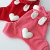 フードにはうさぎさんみたいな「みみ」。お尻にはハート形の「しっぽ」。遊び心満載のキュートなカバーオールは、お家でのリラックスウェアやパジャマとしてぴったり。やさしいフリース素材が腰やお尻もカバーしてあったかです!