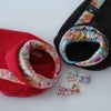 本日、届きました。 うちのコ(ペキニーズ)は、D-Mサイズがぴったりです。 着せてみたら、フリース生地で柔らかく、フードの和柄もとてもかわいい。 アクセサリーはつけてみたら特別感が出たので、お正月の帰省で使う予定です。