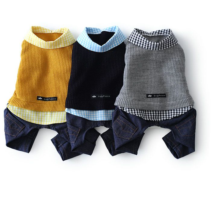 畦編みニット・デニムパンツ付きレイヤードシャツ | 犬服通販ドッグピース