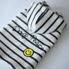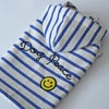人気のスマイリーロゴを刺繍した、ボーダーパーカーです。マリン調のさわやか素材で作ったパーカーは、気持ちも明るくしてくれます。刺繍は品があって高級感もあります。シンプルながらも、軽く着心地のいい一枚に仕上がっています。これからの季節、長く着てもらえるでしょう。