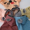 人気のくまみみ&梵天しっぽのオールインワンタイプのキュートロンパースです。フードとつけ耳の裏はチェックのコットン生地がちらっと見えて、なんともキュートです。お尻の「I Love DP」とあしあとのプリントもかわいさいっぱいですね。お部屋着としても、お出かけ着としても、どちらでも大活躍してくれる1着になるでしょう。すれ違う人がみんな振り返るほどキュートなウェアです。落ち着いたトーンの杢調のカラーもGOODです。