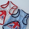 清涼ひんやり素材のクールマックスで作った、おしゃれタンク。つるりとした接触冷感素材にイギリス国旗のユニオンジャックがなんともかっこいい。暑い日は濡らして着せてあげてください。