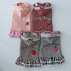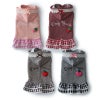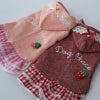 なんといっても背中のDog Peaceの刺繍とフルーツ編みぐるみがポイント。チェックスカートもレース付きでふんわり。