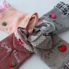 ピンクとグレーを購入しました。イチゴとリンゴのアップリケがとても可愛いです。
