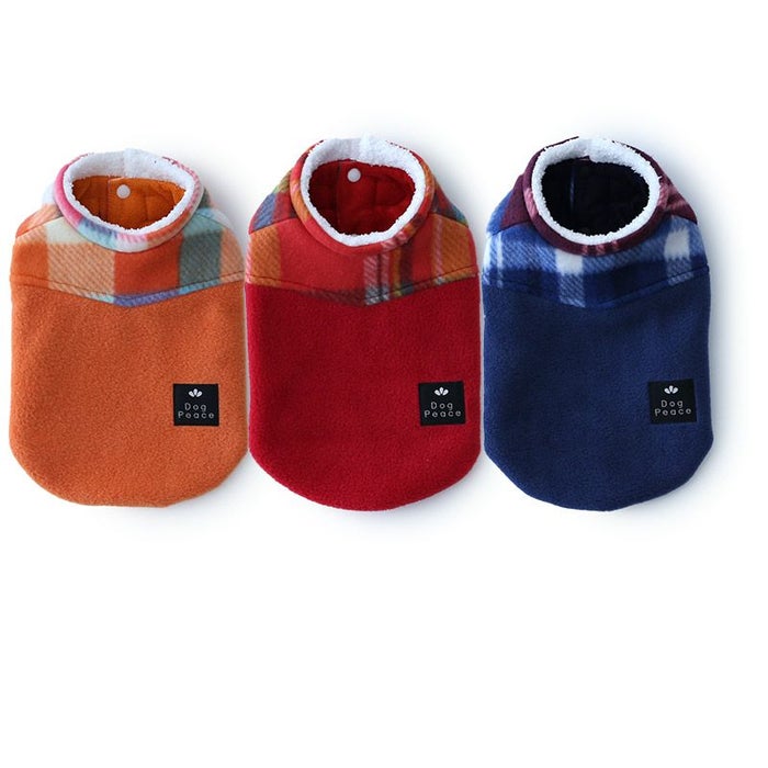 上品なチェックフリースとプレーンフリースの組み合わせ。