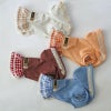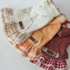 カンガルーポケットとギンガムチェックは気取らないふだん着カジュアルテイスト。そこにレース、ウッドボタンなどこだわりディティールをミックスして、とっても上品な印象に。