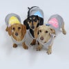 色に悩んで、2匹にそれぞれピンクとイエローを買いましたが 現物がすっごく可愛くてブルーも追加で、結局全色2匹分そろえました! 立体的なキャンディのリボンがとストライプのトリミング豪華で可愛いです。 こんな感じのデザインで名入れがあればいいなぁ♪
