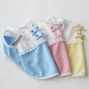 レースとリボンがかわいい切り替えタンクトップ。男の子、女の子どちらにも映えるキュートデザインです!