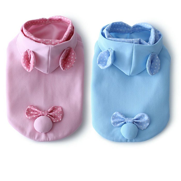冷感素材ヴェリークールで作ったパーカーにみみとしっぽを付けた人気デザイン。2022年度のドッグピースのサマーウェアの最後の洋服になります。