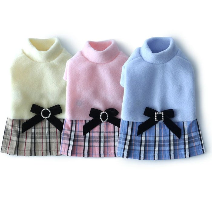 ハイネックフリース・チェックプリーツワンピース | 犬服通販ドッグピース