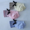 リボンのバックルのプラスチックパールの形はカラーごとに微妙に異なるのもポイント。