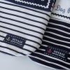 波型のレースで縁取られたセーラーカラー。ロープのドッグピースロゴに、スカーフと同色のアンカーマークをプリントしています。