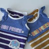 もこもこの質感がかわいいボーダーブークレーボーダーとニットデニムを組み合わせたタンクトップです。アニマル柄ワッペンと少し懐かしい感じのロゴ、断ち切りの肩リボンなど、ヴィンテージライクに仕上がっています。
