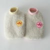 首ぐりや袖、裾はイエローとピンクのやさしいフリース素材。