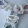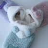 やさしいパステルカラーのボア生地とフリースで作った冬パーカーです。カラーごとにフードについているアクセントが違うのがポイント♪ まだまだ冬を楽しんで!
