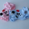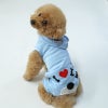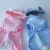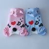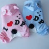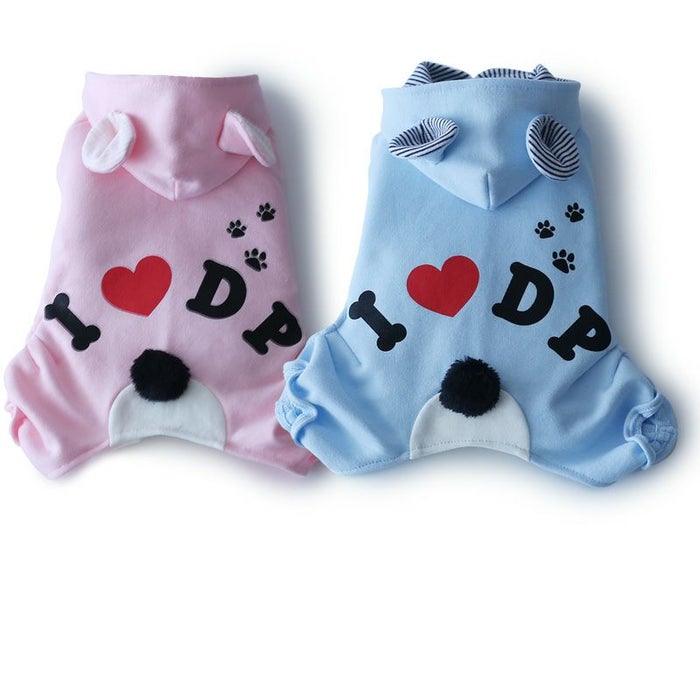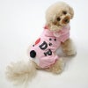 人気のくまみみ&梵天しっぽのオールインワンタイプのキュートロンパースです。フードとつけ耳の裏は爽やかボーダー。お尻の「I Love DP」とあしあとのプリントもかわいさいっぱいですね。愛犬をキュートなロンパースでくるんであげてください。すれ違う人がみんな振り返るほどキュートなウェアです。。