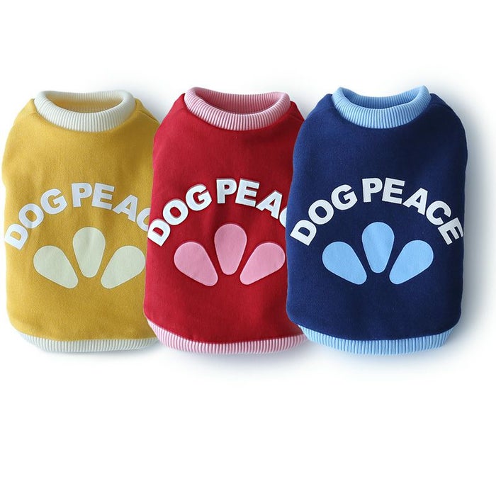 根強い人気のドッグピースロゴをプリントした、着せてあげるだけで気分があがるカラフルなベストです。オールシーズンちょうどいい、ジャージ素材のマストな1着です。