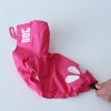 撥水ナイロンと蒸れないメッシュの組み合わせです。1枚持っているととっても便利♪ アクティブにお出かけを楽しもう。背中のドッグピースロゴとフードの目出しビニールがポイントです。