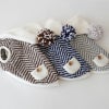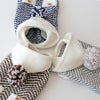 ホワイトフードとその先についた手作りのポンポンがアクセント。