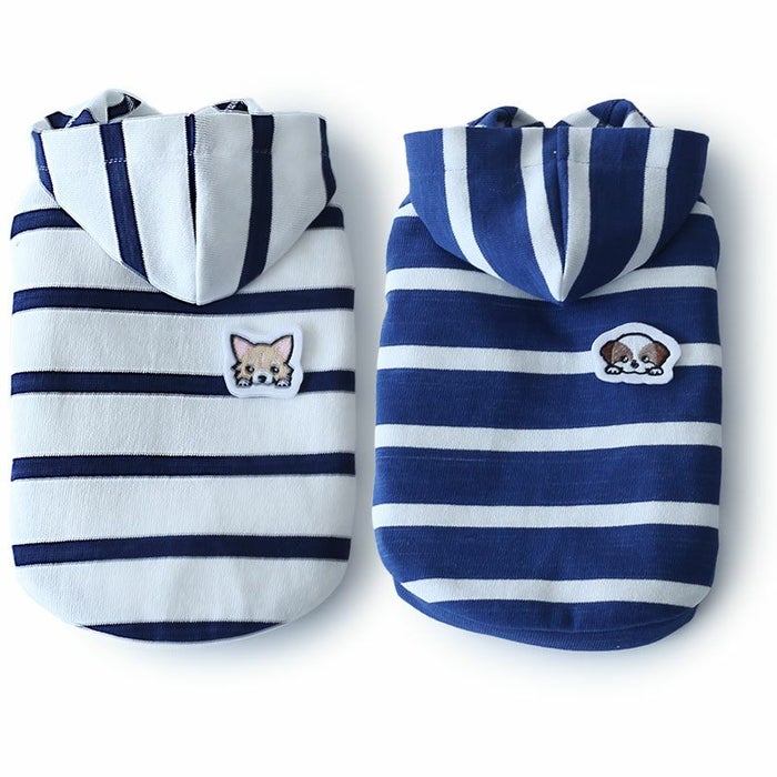 4つのスタイルから選べるマリンボーダーパーカー(3.犬種別フェイスワンポイト刺繍) | 犬服通販ドッグピース